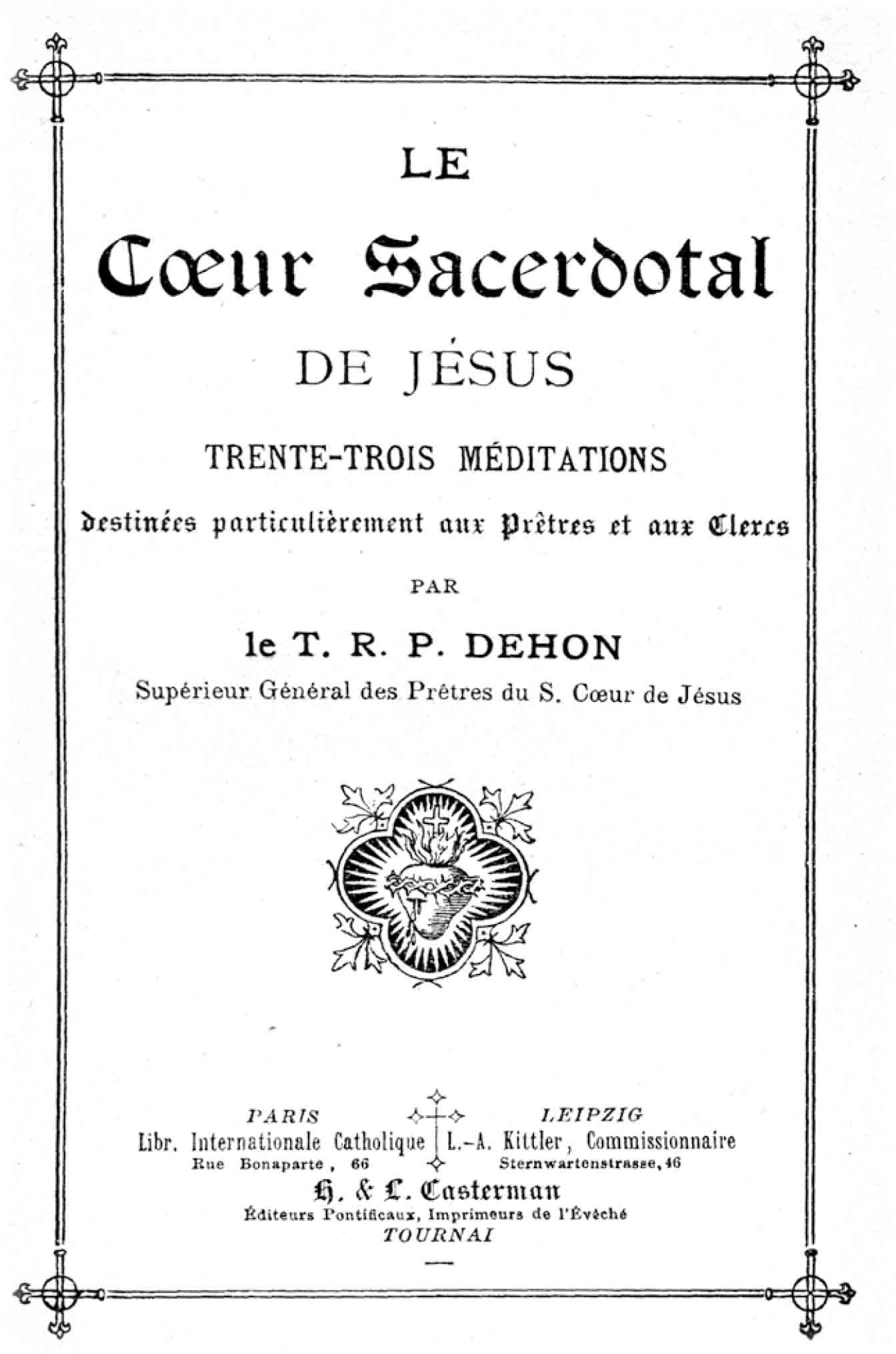 Dehon L., Le Cœur Sacerdotal de Jésus. Trente-trois méditations destinées particulièrement aux Prêtres et aux Clercs, Casterman, Tournai 1907.
